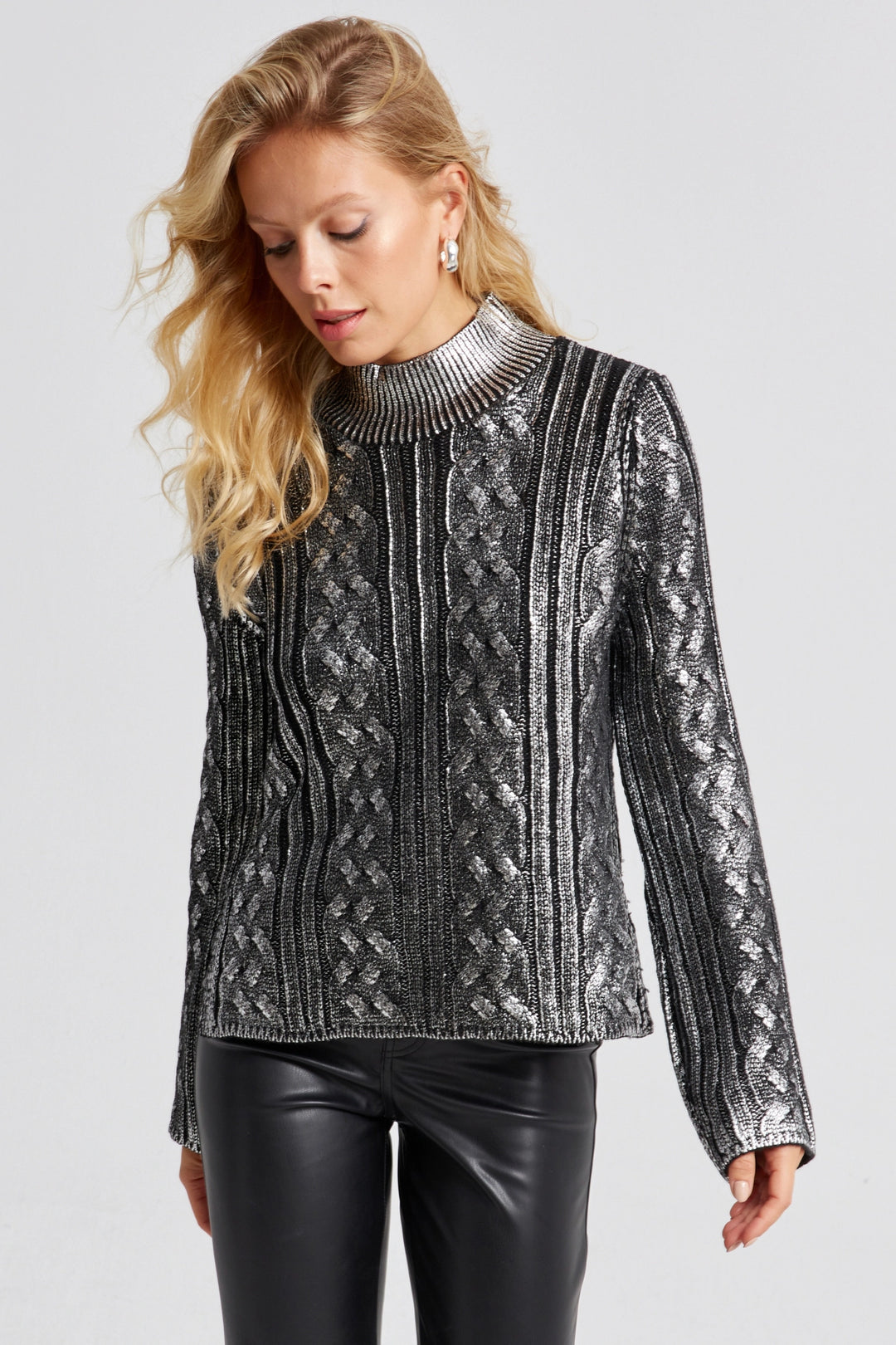 Black Half Fisherman Bright Knit Sweater BCBSK-25700-K7632 - Longview