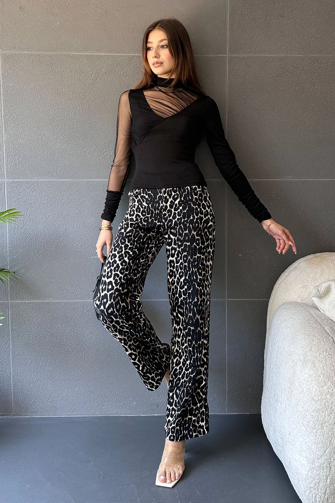 Black Half Fisherman Tulle Detailed Blouse BCDF-241099 - Owasso
