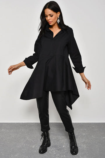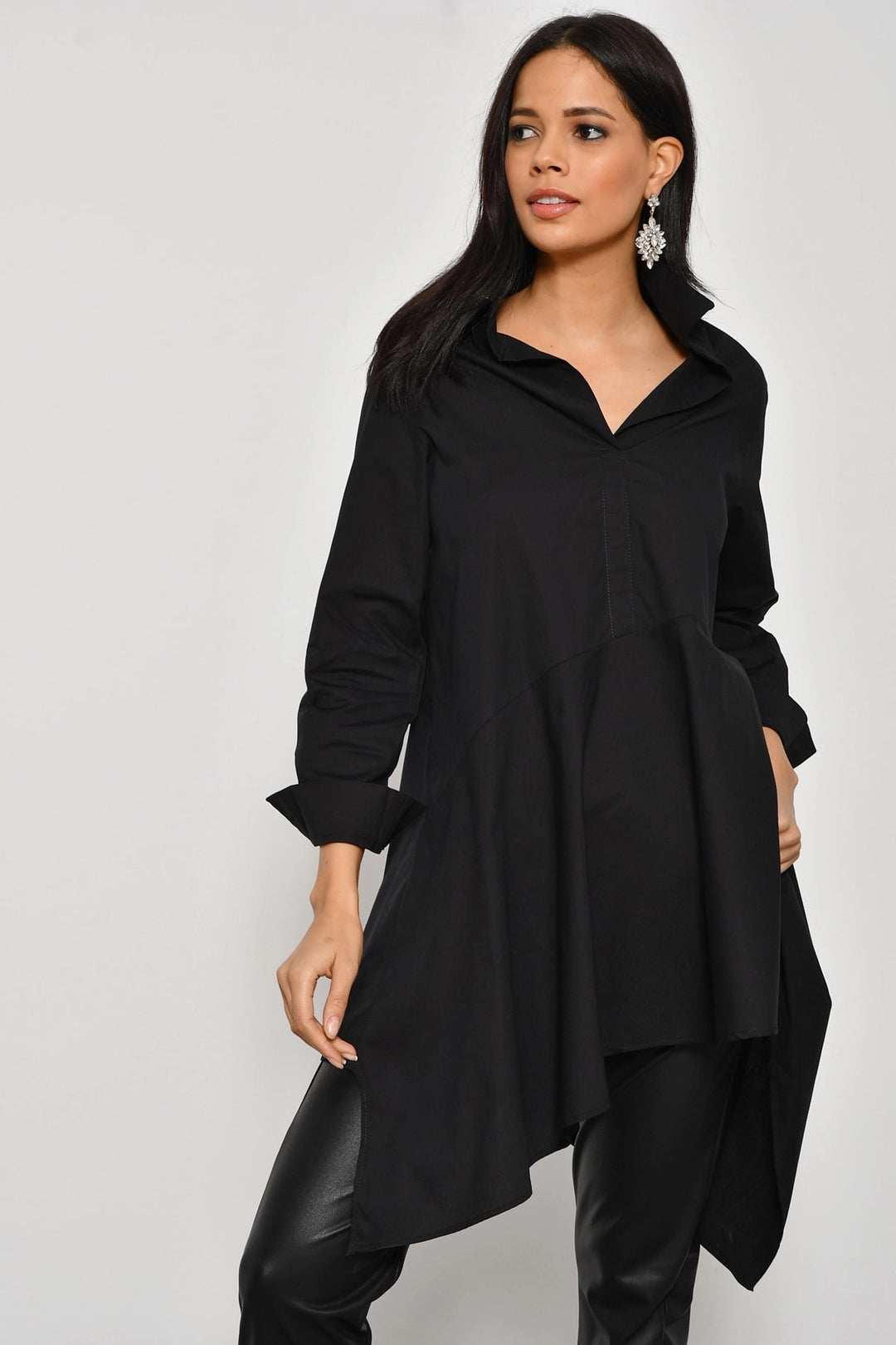 Black Half Button Oversized Woven Shirt BCBSK-25700-K4912 - Marcianise