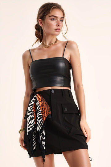 Black Front Buttoned Crop Vest and Shorts Set BCDF-241075 - Odenton