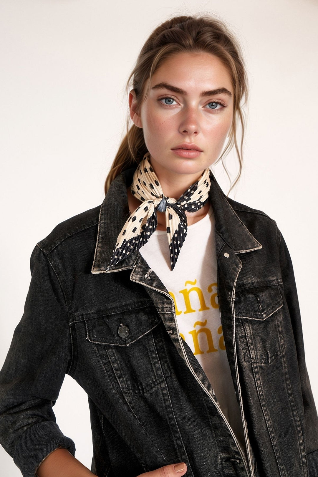 Black Geometric Patterned Bandana Scarf BCNSV-25WT1031 - Valdemoro