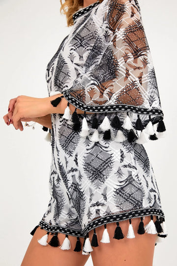 Black Heart Patterned Foil and Tasseled Shawl BCNSV-2515054 - Mühlhausen