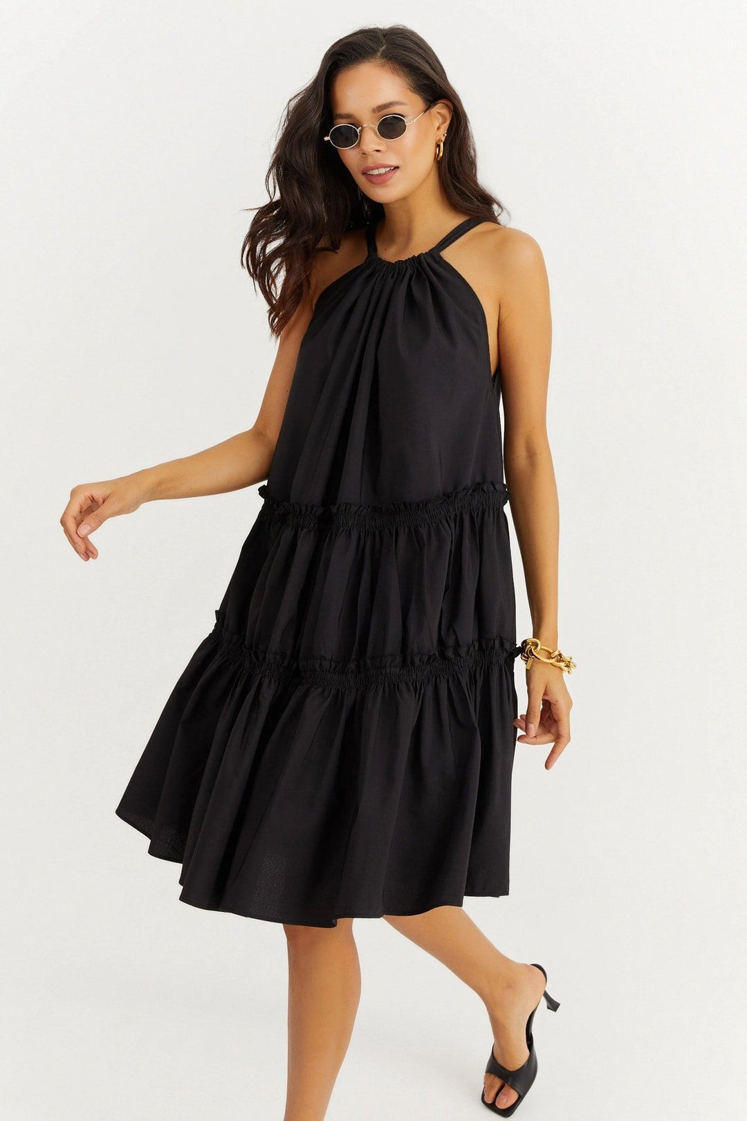 Black Halter Skirt Layered Ruffled Poplin Dress BCBSK-25700-K7172 - Athis-Mons
