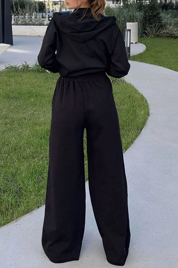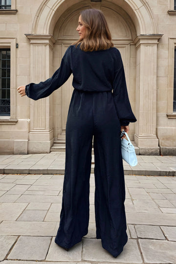 Black Half-Buttoned Elastic Waist Wide Leg Slouchy Jumpsuit BCBSK-25700-3360 - Downers Grove