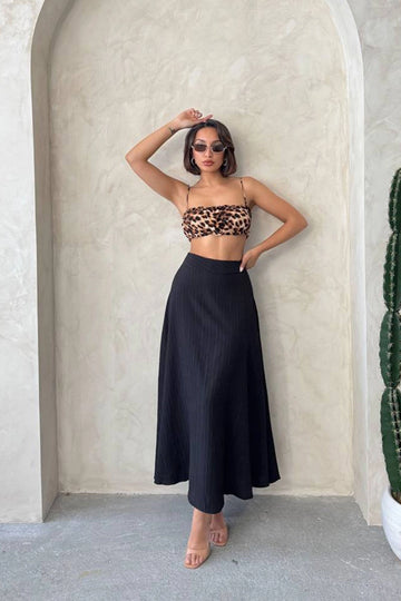 Black High Waist Belted Long Skirt BCBSK-25700-3503 - Dnipro