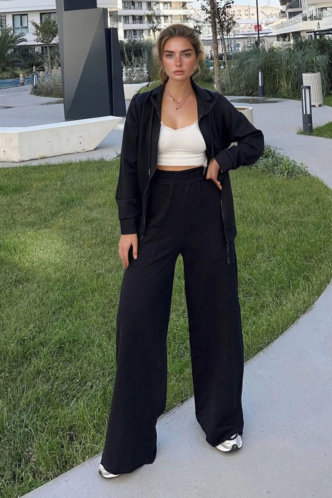 Black High Waist Elasticated Pocket Wide Leg Soft Textured Trousers BCBSK-25700-3169 - La Seyne-sur-Mer
