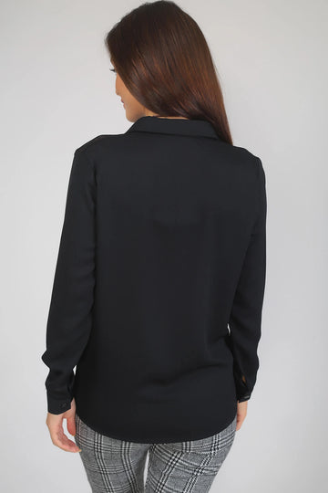 Black Lace Trimmed Long Sleeve Shirt BCBSK-25700-K6105 - Lingen