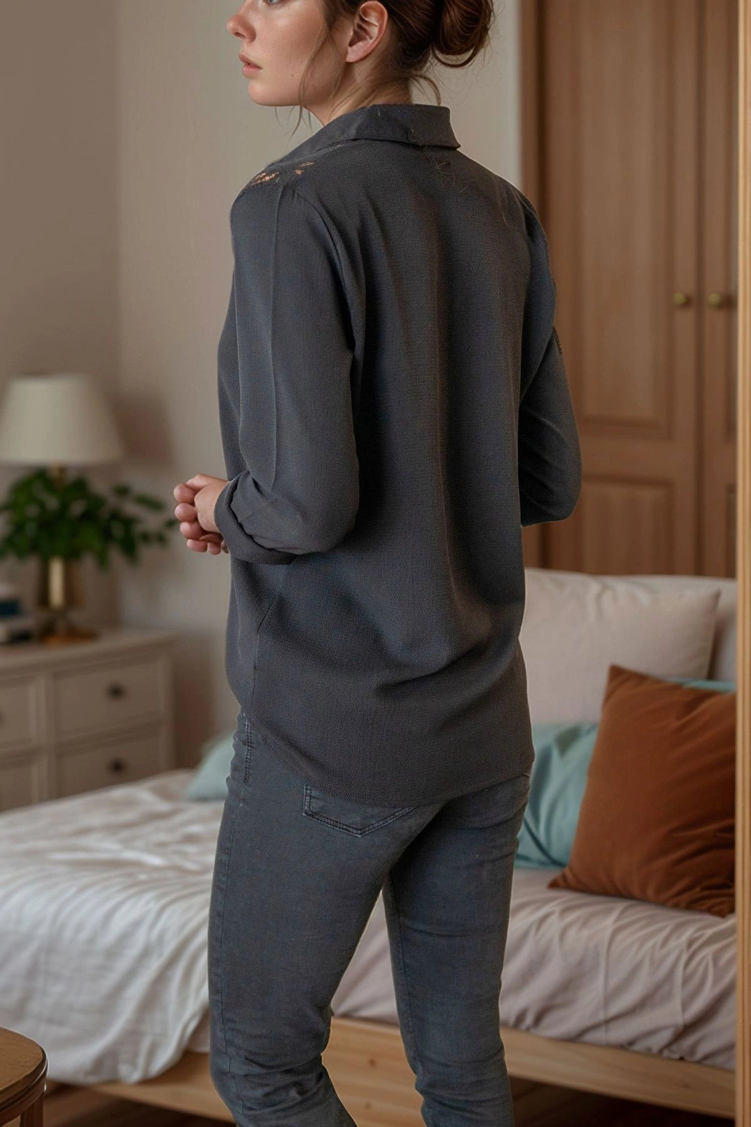 Black Light Touch Soft Textured Double Breasted Blouse and Leggings Set BCCM-253002 - Dráma