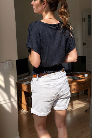 Black Lace-Up Crop Muslin Woven Blouse BCBT-251005 - Piatra Neamţ