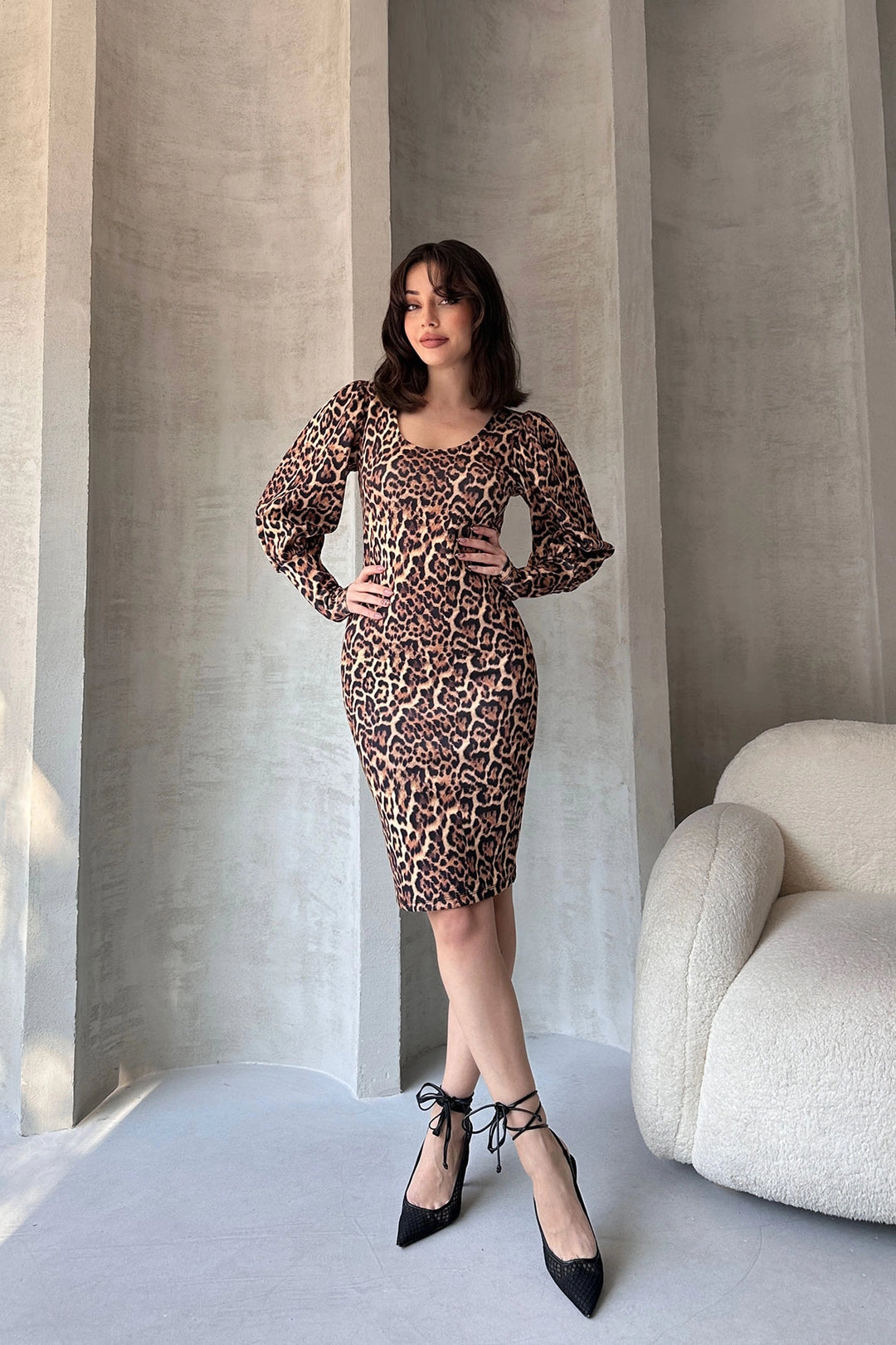 Black Leopard Print Midi Dress BCDF-242149 - Nelson
