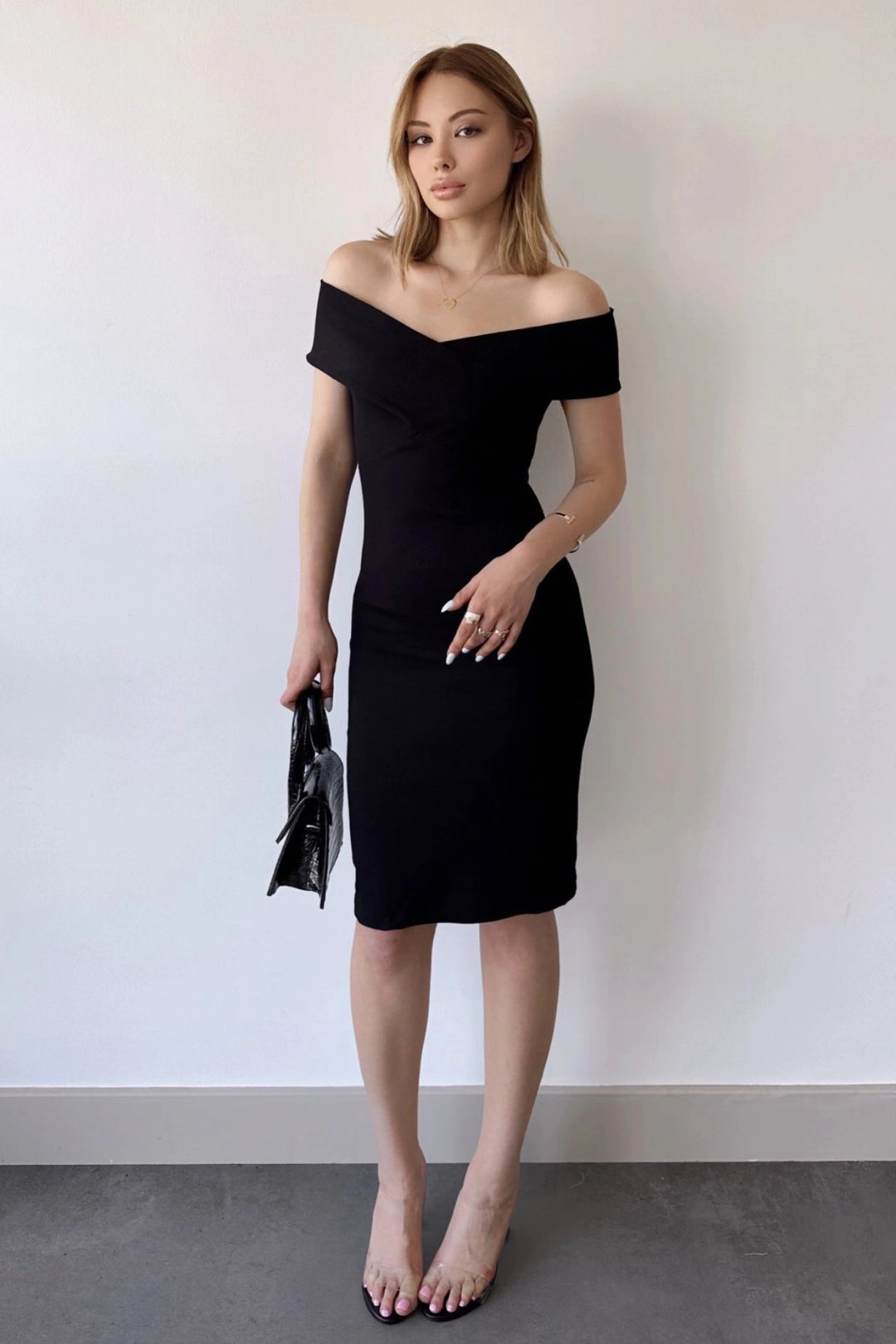 Black Midi Faux Leather Pencil Skirt BCHN-2526780 - Rowlett