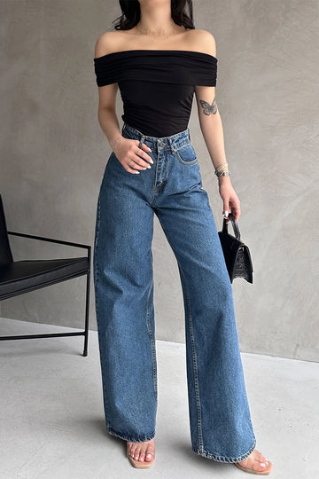 Black Linen Loose Blouse with Off-Shoulder Neckline BCBSK-25700-2923 - Hammond