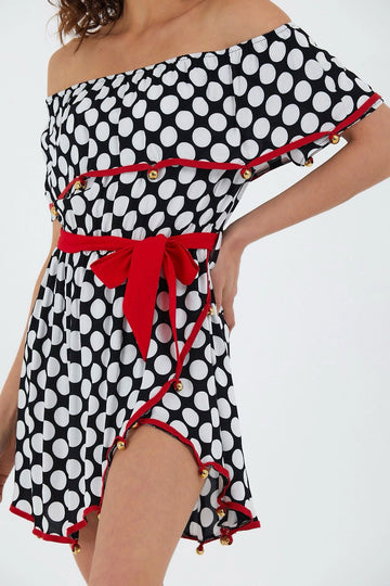 Black Madonna Collar Patterned Ruffled Woven Dress BCVL-251000ELB - Viana do Castelo