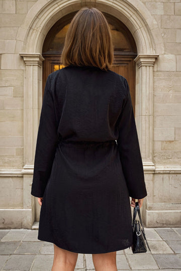 Black Linen Woven Dress with Hidden Pocket BCDF-25255029 - Lucca