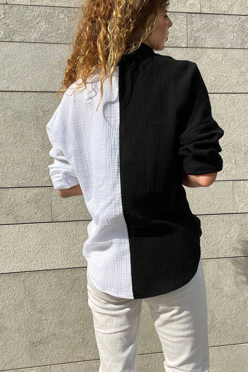 Black Muslin Color Block Loose Shirt BCBSK-25700-3458 - San Francisco