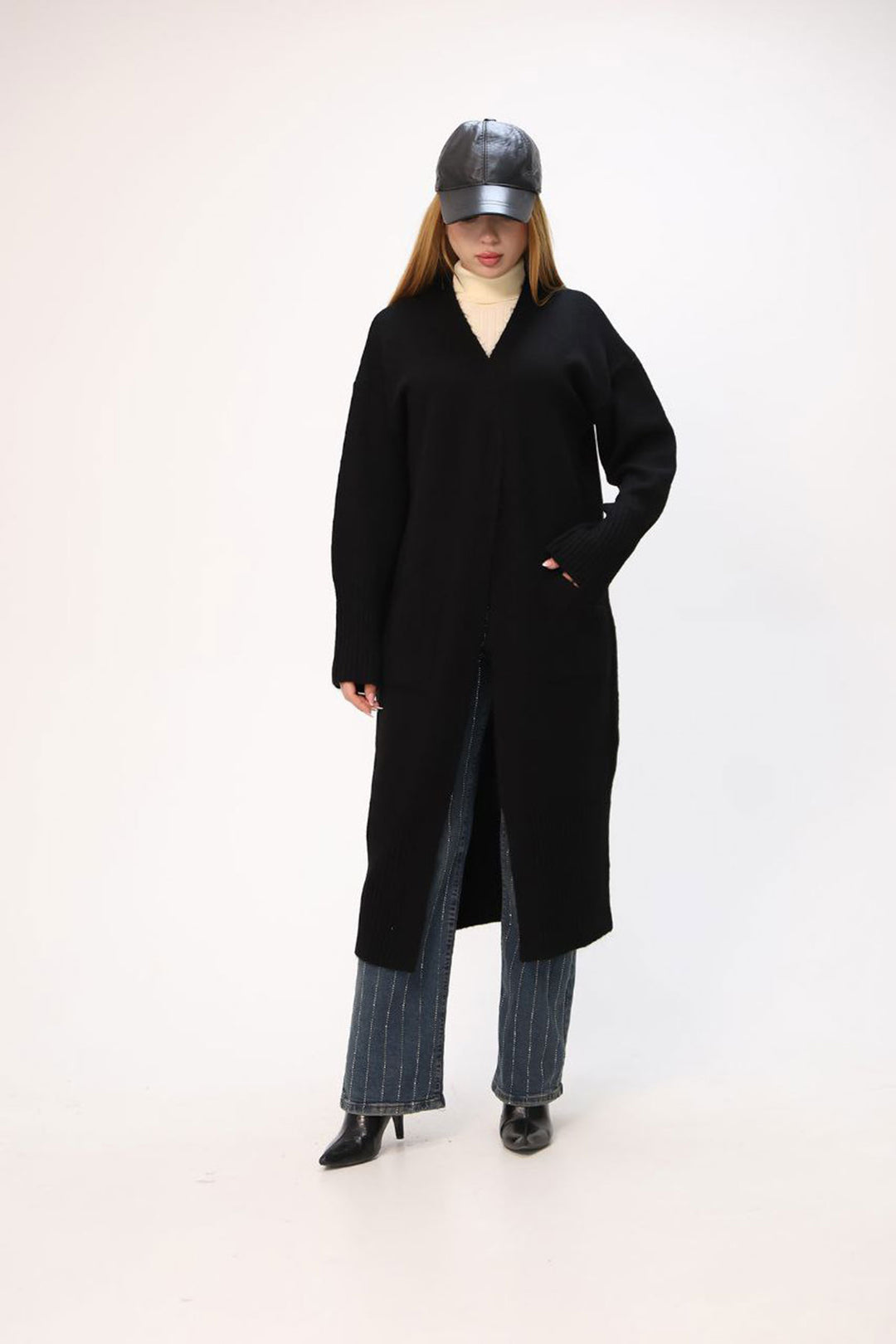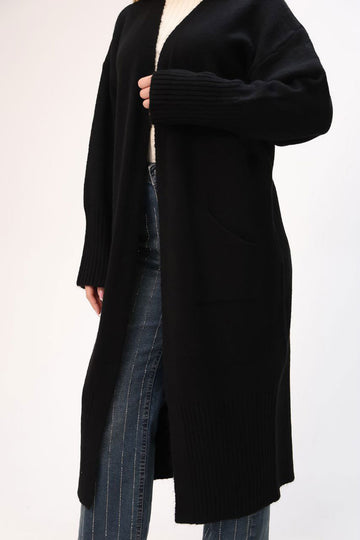 Black Maxi Size Knit Cardigan BCES-252037 - Pforzheim
