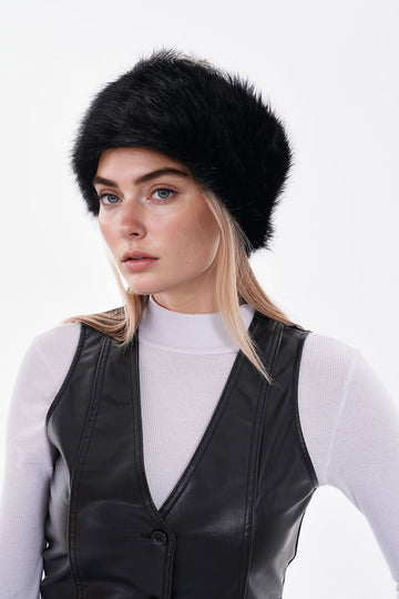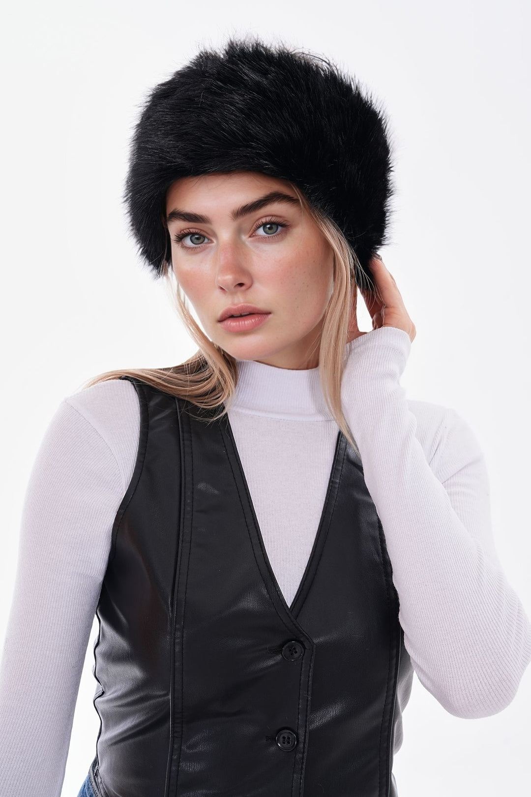 Black Plush Pilot Hat Beanie with String BCNSV-25WT1085 - Blois