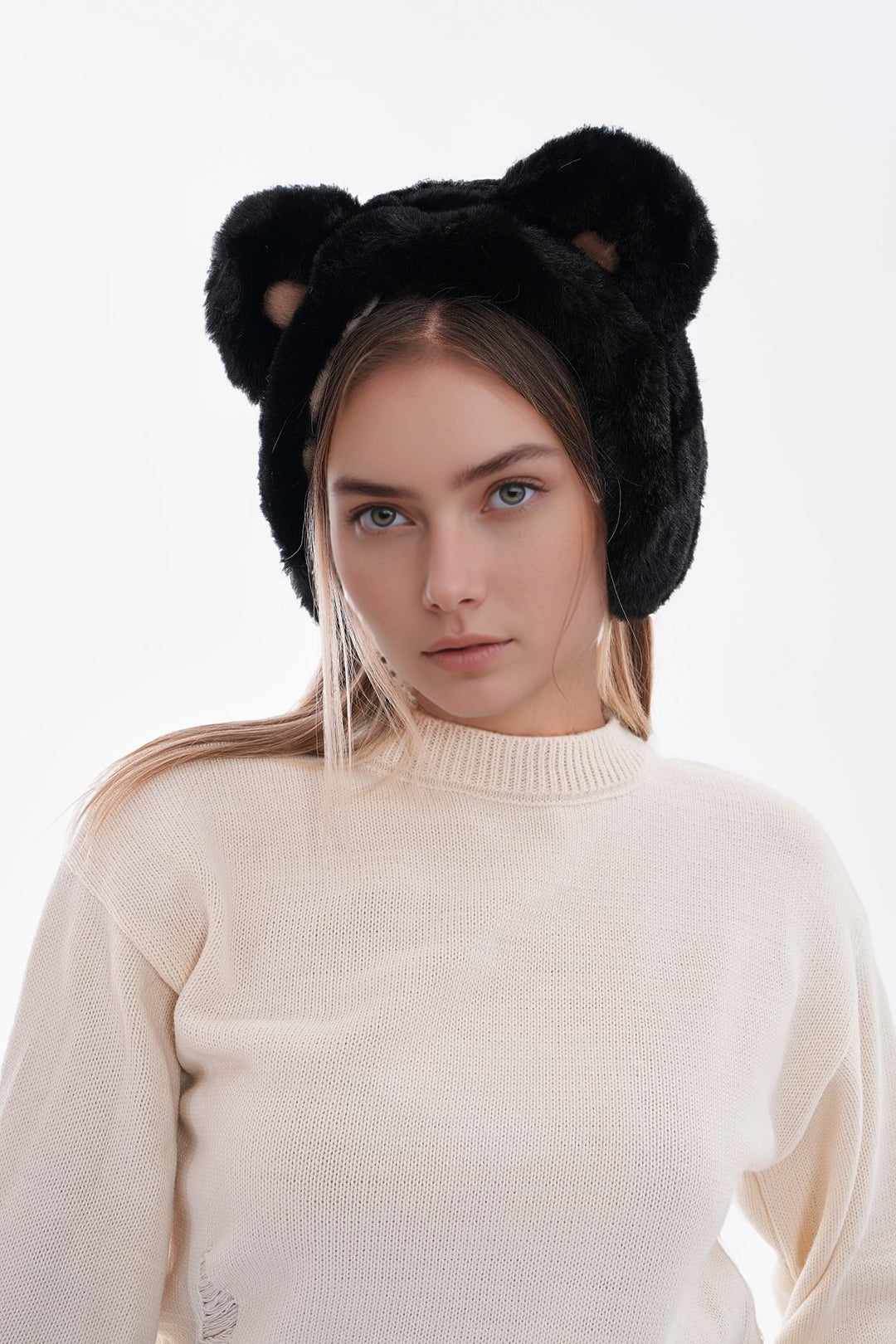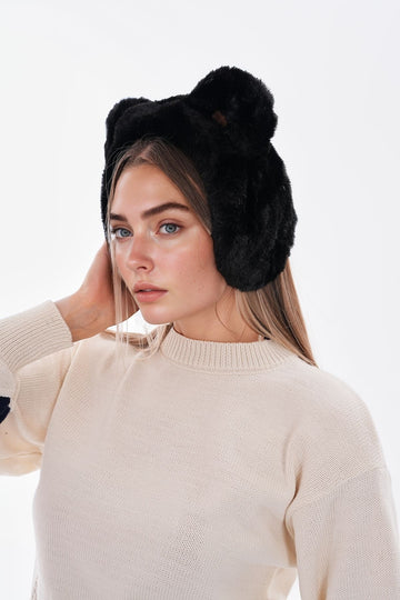 Black Plush Cap with Rabbit Ears BCNSV-25WT1113 - Lowestoft