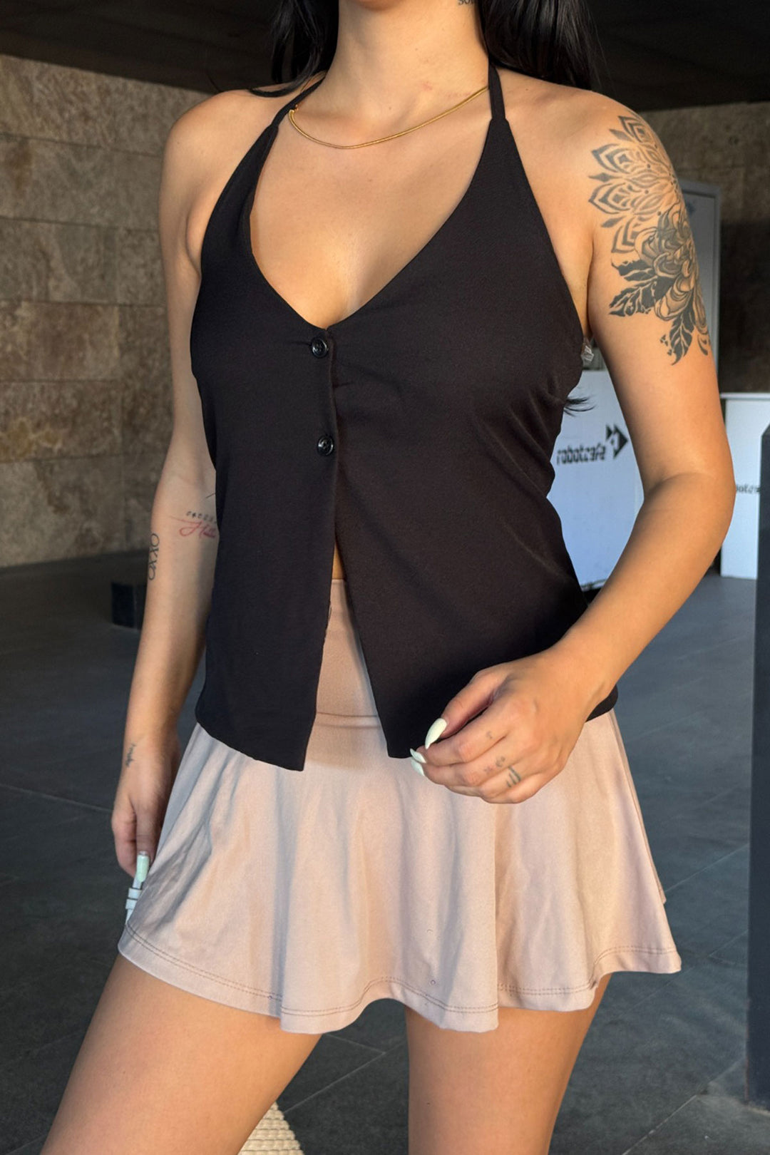Black Sleeveless Blouse with Button Detail BCDF-252163 - Phoenix