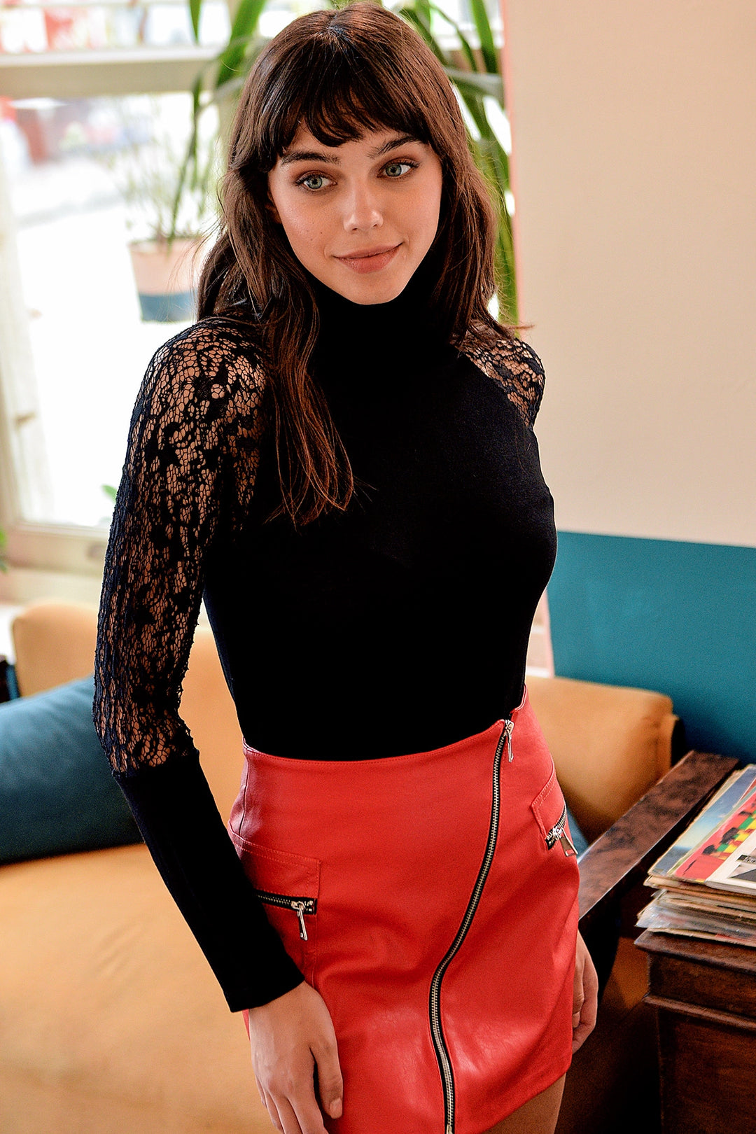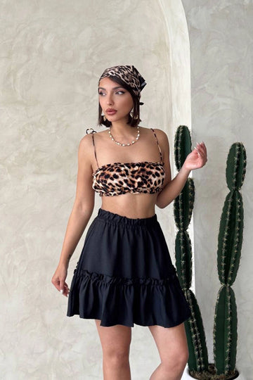Black Skirt Ruffled Rose Detailed Crop Bustier Blouse BCDF-252184 - Waldorf