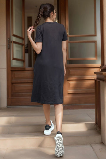 Black Short Sleeve Pocketed Basic Dress BCBSK-25700-3614 - Torremolinos