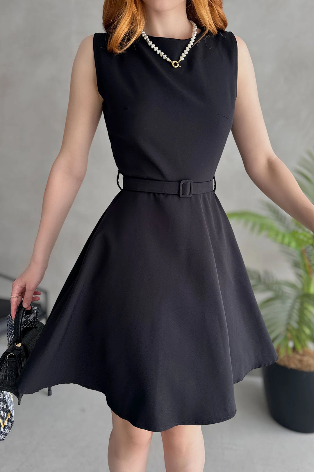 Black Sleeveless Belted Detail Dress BCDF-252202 - Little Rock