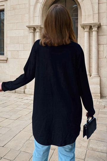 Black Side Slit V-Neck Long T-Shirt BCBSK-25650-6007-2 - Meoqui