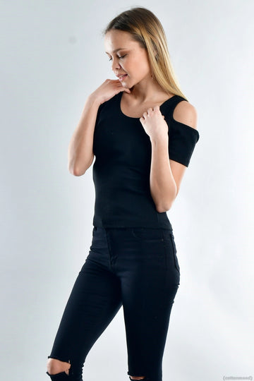 Black Tank Top with Open Shoulders and Short Sleeves CO-2520021670 - Würzburg
