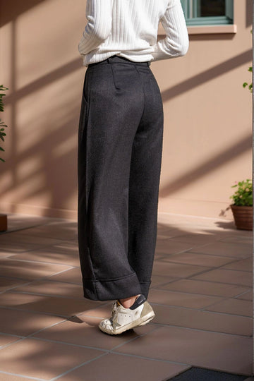 Black Textured Double Pleated Wide Leg Pants BCBSK-25700-3309 - Gütersloh