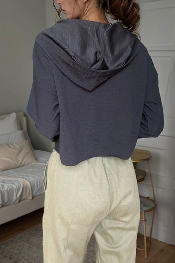 Black Textured Zippered Hooded Crop Sweatshirt BCBSK-25700-3322 - Provo