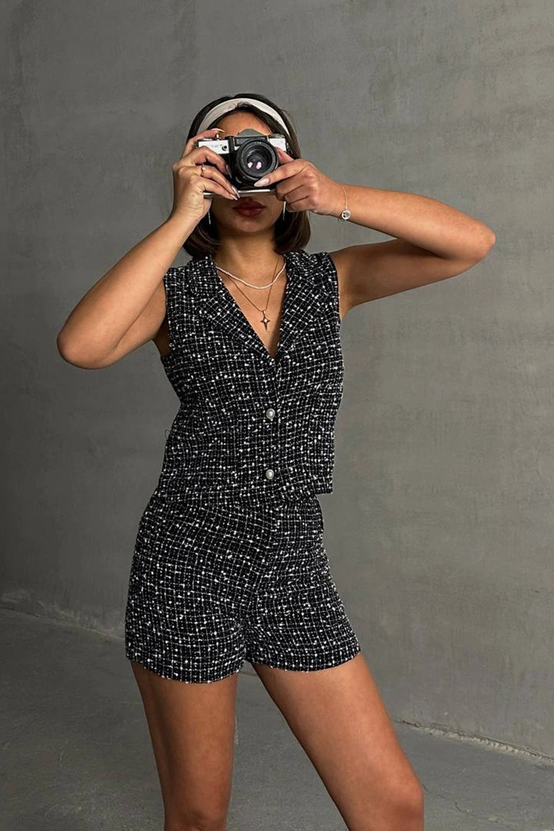 Black Tweed Fabric Vest and Pocket Shorts Set BCHN-2525463 - Sibiu