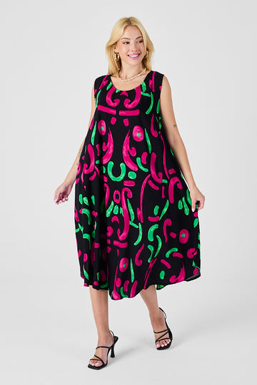 Black U Neck Sleeveless Asymmetric Cut Midi Dress BCVL-254017 - Gastonia