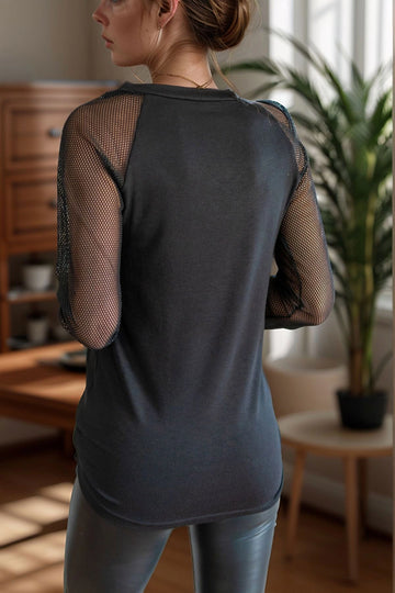Black V Neck Collar Mesh Blouse BCBSK-25700-T4006880 - Etterbeek