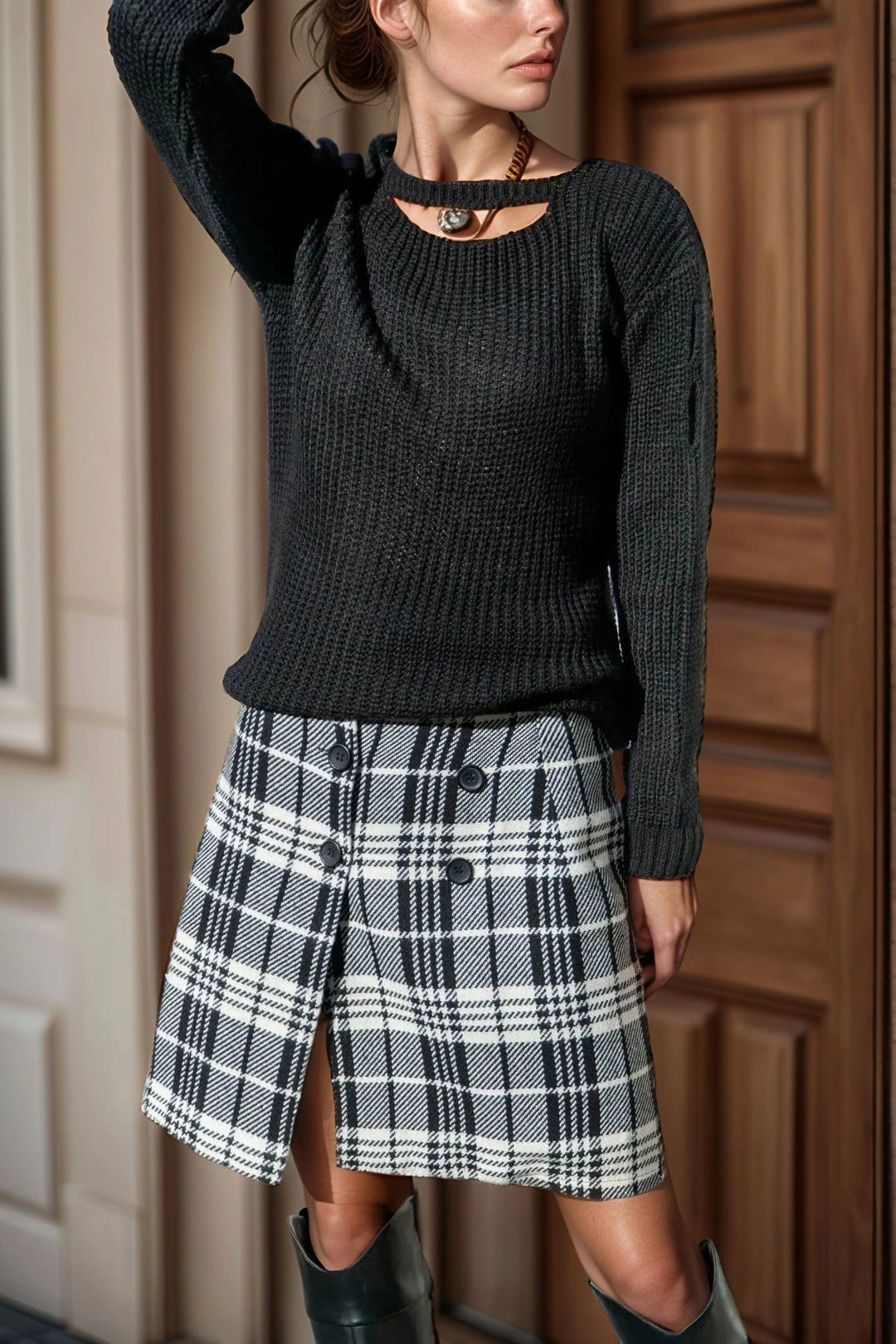 Black Turtleneck Knitted Crop Sweater and Knitted Dress Set BC231004 - Pikesville