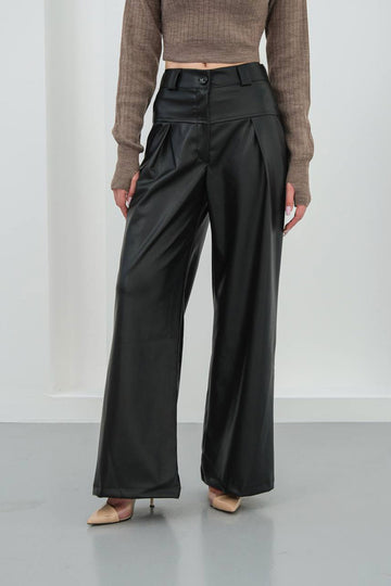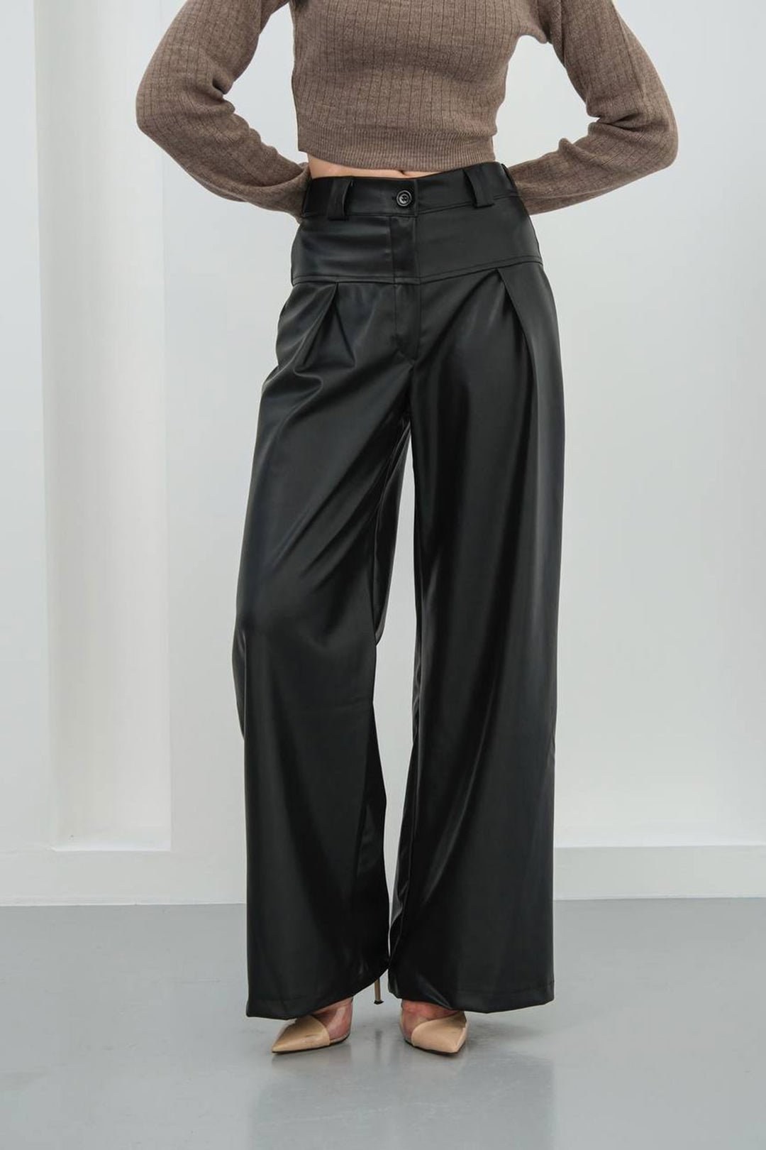 Black Wide Leg Faux Leather Pants BCHN-25263644 - Roseville