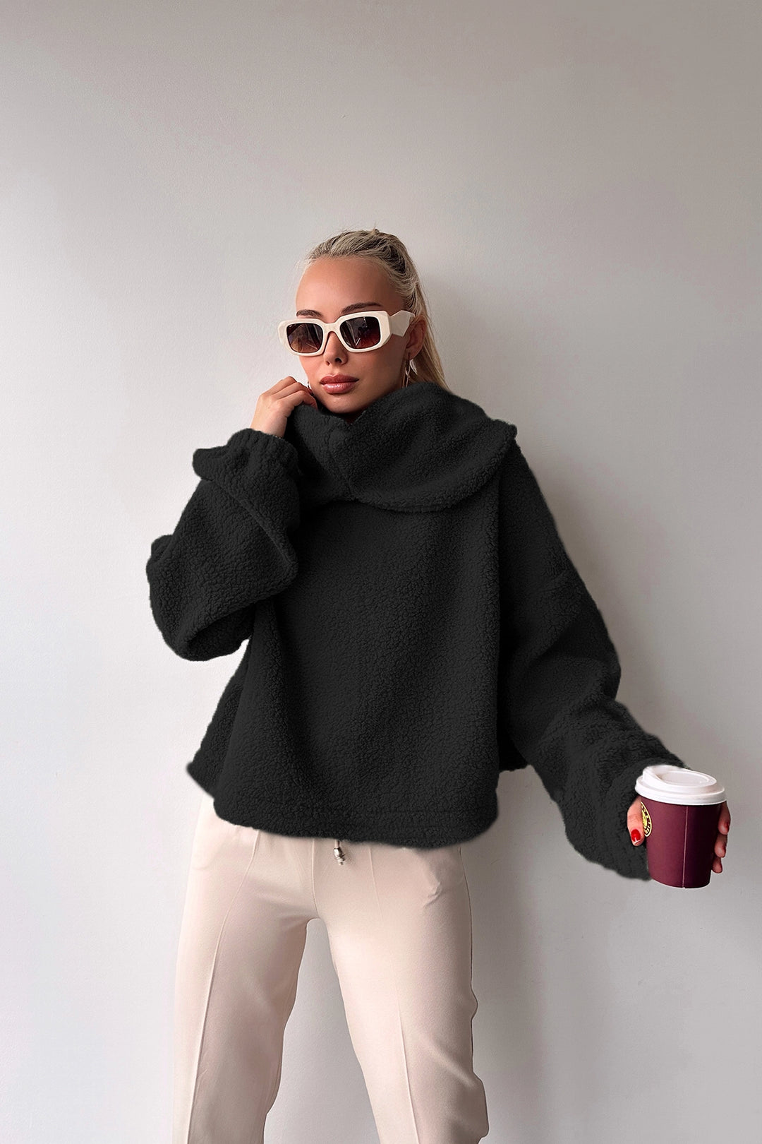 Black Wide Collar Welsoft Plush Sweatshirt BC231022 - Norwich