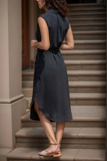 Black Wrap Jacket Collar Pocket Belted Airobin Dress BCBSK-25700-2881 - Rouen