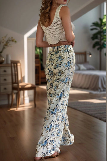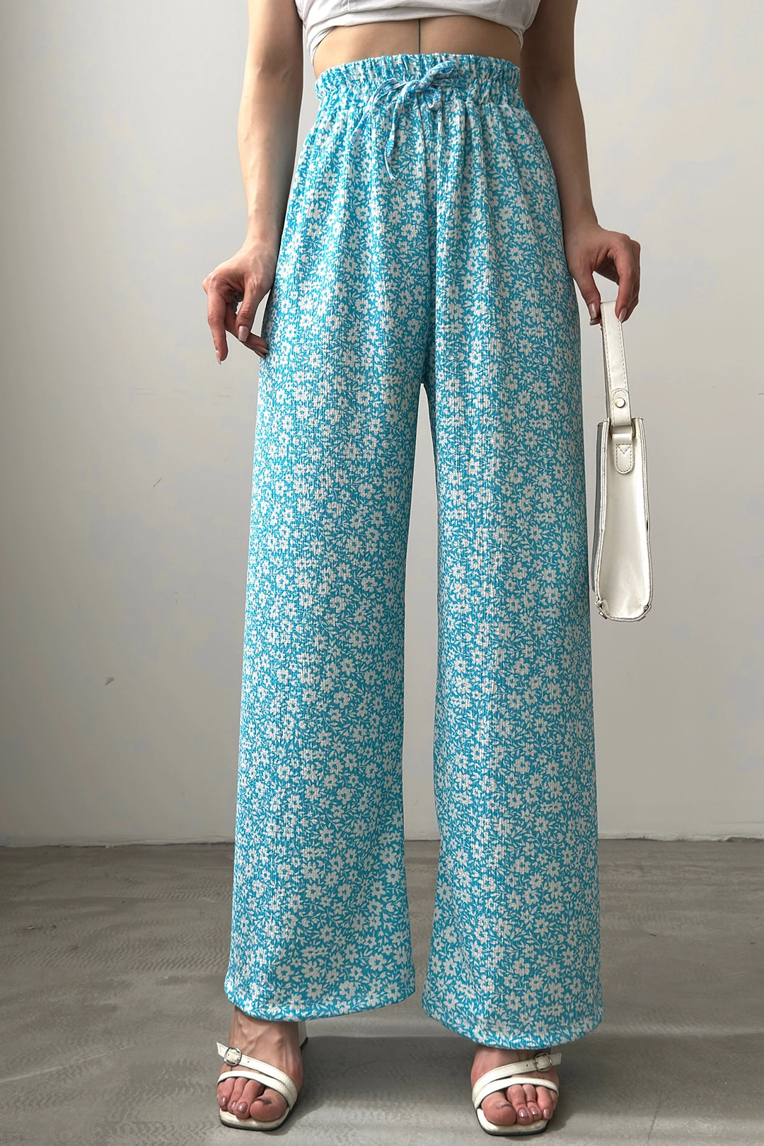 Blue Patterned Elastic Waist Ruffled Pants BCDF-241104 - Ciudad Santa Catarina