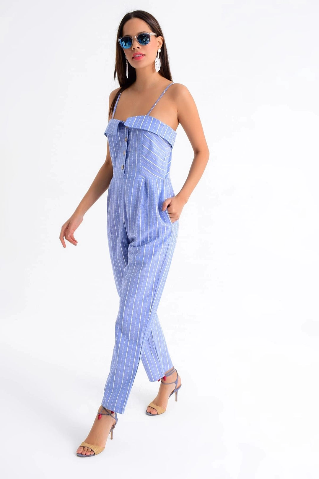 Blue Sleeveless Striped Buttoned Jumpsuit BCBSK-25700-K4200 - Menifee