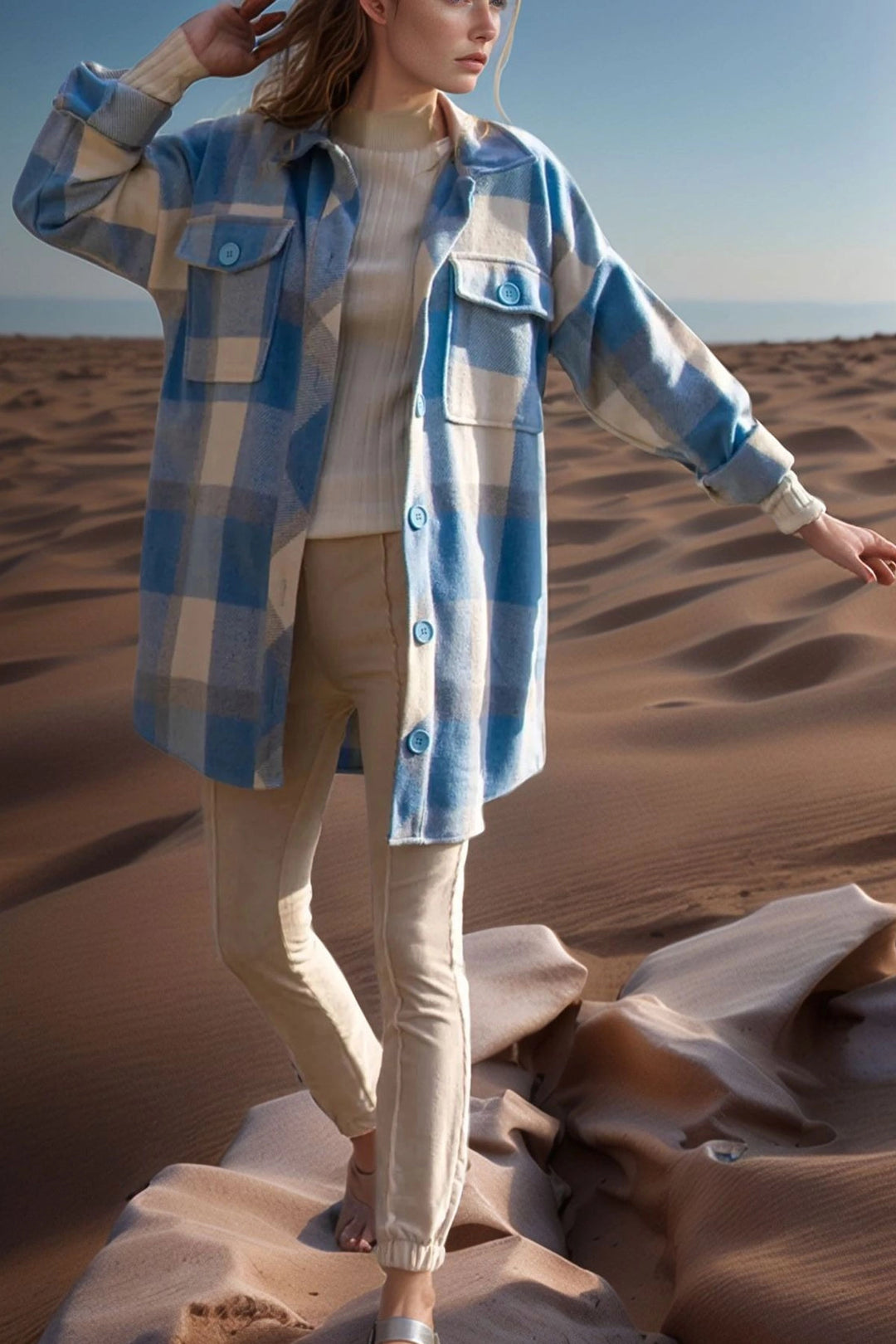 Blue Plaid Loose Thick Jacket Shirt BCBSK-25700-3174 - Westerville