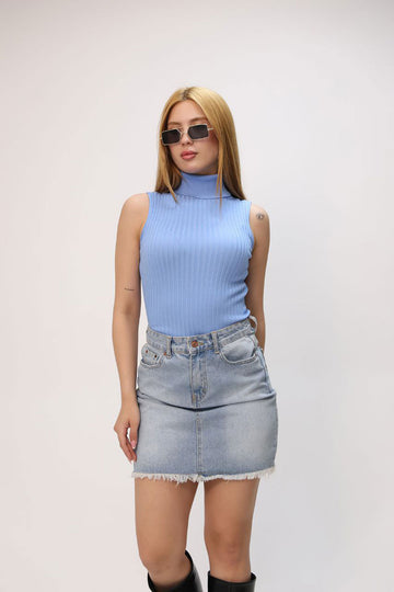 Blue Sleeveless Turtleneck Knit Blouse BCES-252022 - Steyr