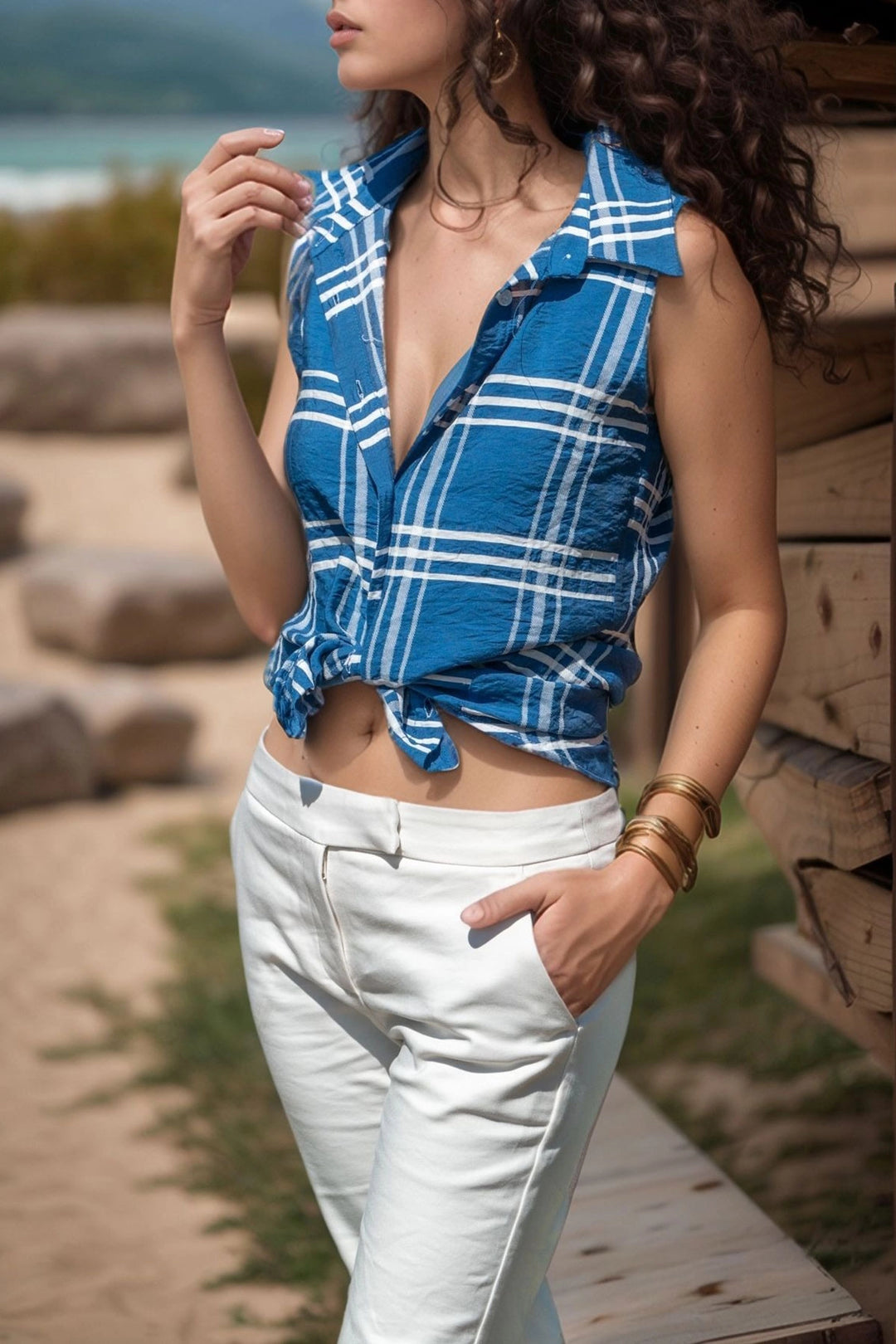 Blue Sleeveless Striped Shirt BCBSK-25700-2878C - Douai