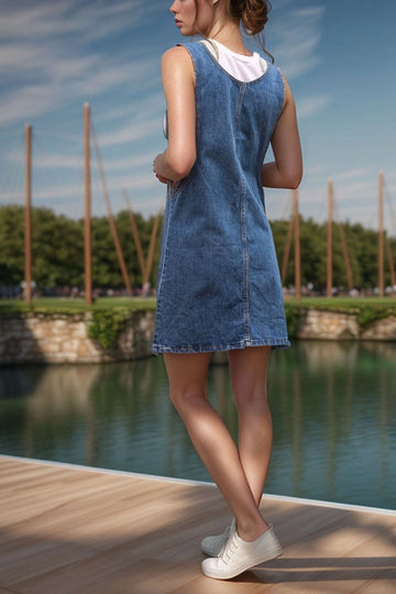 Blue Strappy Double Pocket Denim Dress BCBSK-25700-K6369 - Collegno