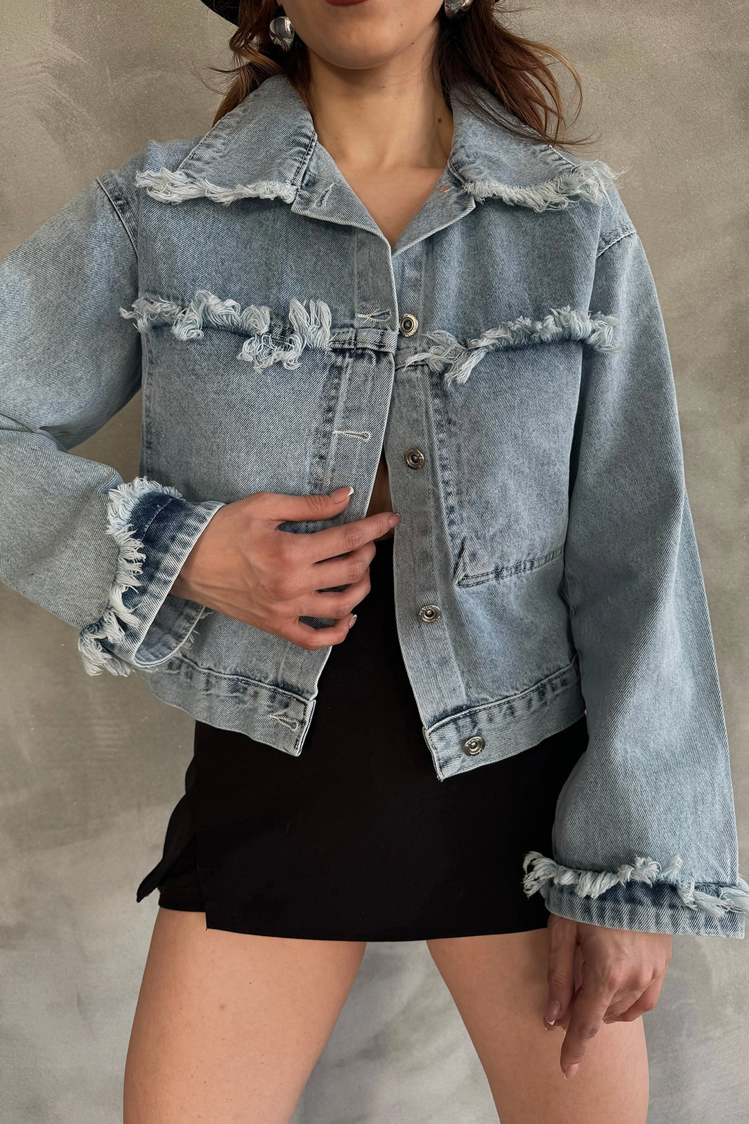 Blue Tassel and Distressed Detailed Summer Denim Jacket BCDF-255418 - Jocotepec