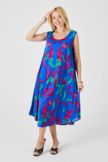 Blue U Neck Sleeveless Skirt Asymmetric Cut Patterned Midi Dress BCVL-254016 - Kidderminster