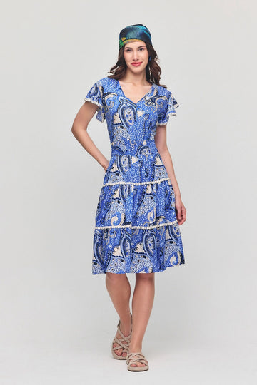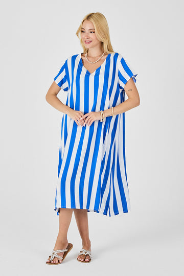 Blue V-Neck Short Sleeve Loose Fit Dress BCVL-254003 - Penticton