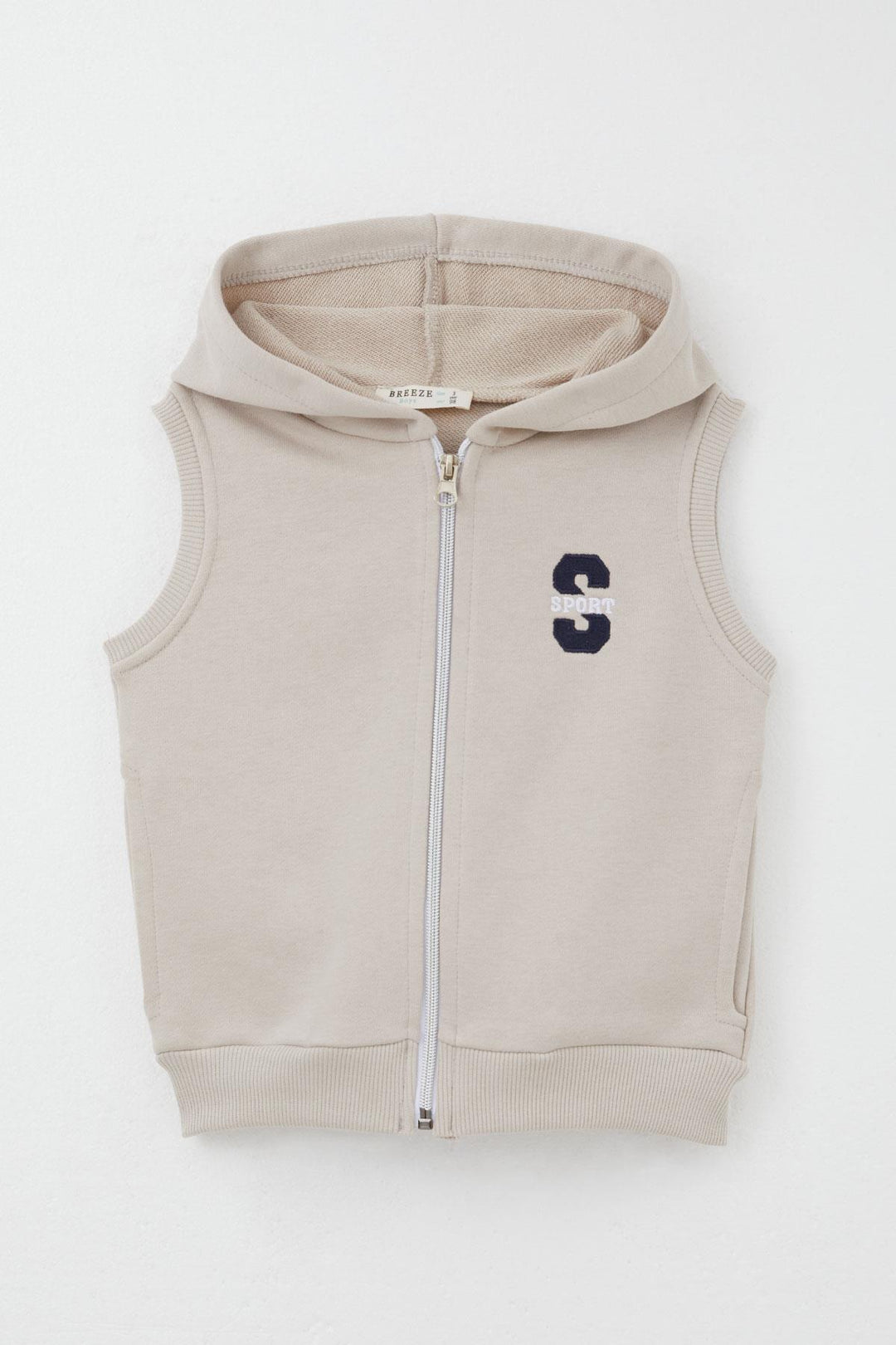 BRE Breeze Boys' Vest with Letter Embroidery Zipper 3-8 Years, Mink - Eugene