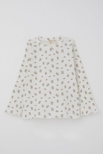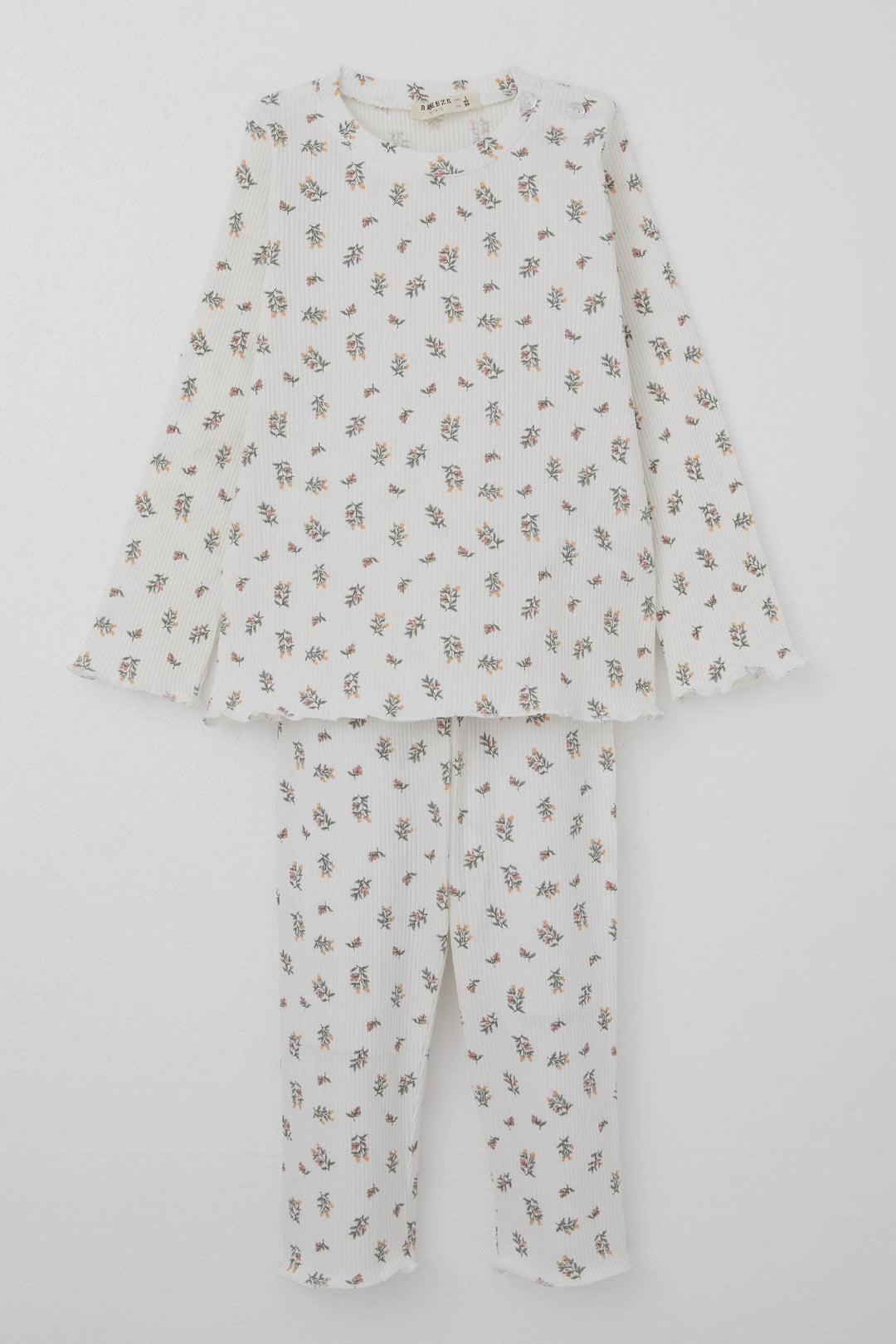 BRE Breeze Girl Baby Pajama Set Flower Patterned Buttoned Shoulder 9 Months-3 Years, Ecru - Tuttlingen