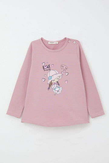 BRE Breeze Girl Baby Long Sleeve T-Shirt Dancer Girl Printed with Lace 9 Months-3 Years, Powder - Mitcham