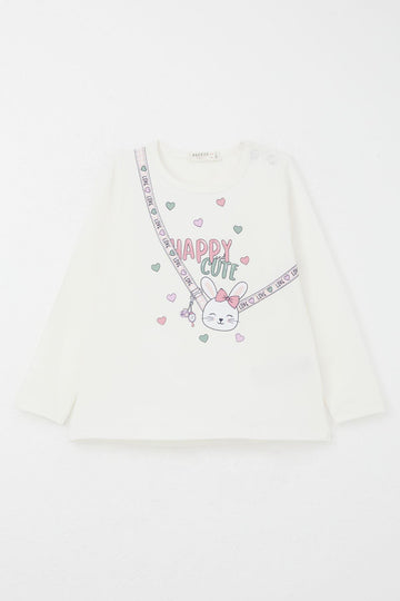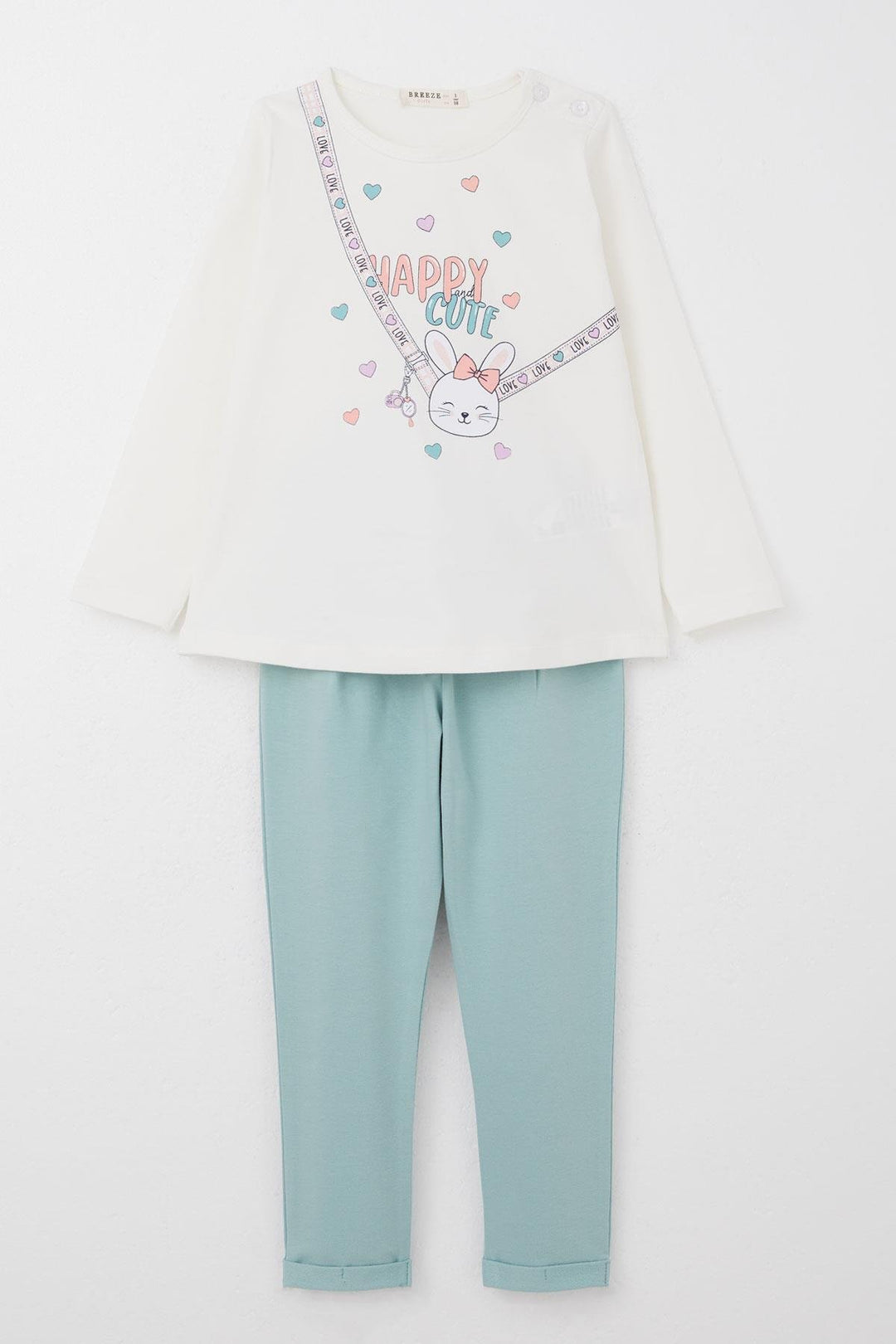 BRE Breeze Girl Baby Leggings Set Happy Bunny Printed Heart 9 Months-3 Years, Ecru - Roubaix